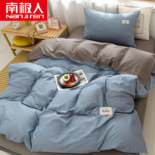 南极人NanJiren 全棉三件套 简约纯棉斜纹床上用品单人学生宿舍床单枕套 1.2米床 被套150x200cm 浅蓝浅灰