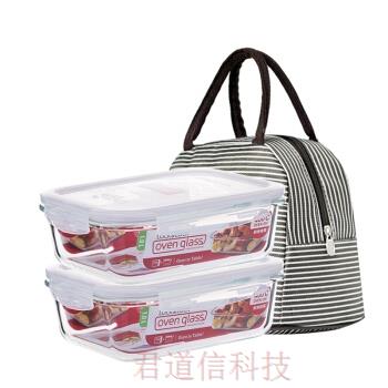 乐扣乐扣 微波炉饭盒大号 大容量耐热玻璃保鲜盒 专用可加热密封便当盒餐盒零食品水果盒子(1L*2 赠带饭包) |