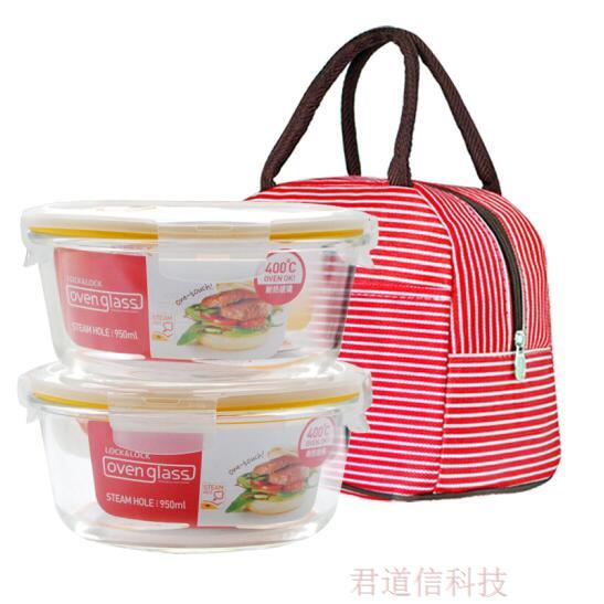 乐扣乐扣 带蒸汽孔玻璃保鲜盒 微波炉饭盒 玻璃碗便当盒餐盒LLG861T两件套装950ml*2