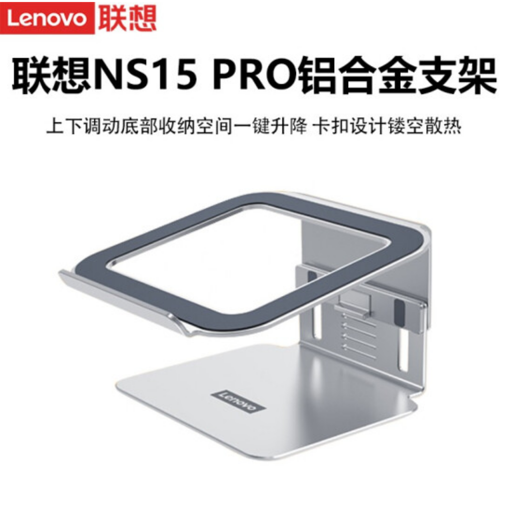联想(Lenovo) 多角度调节 高效散热 轻便稳固 游戏商务办公更轻松 银『NS15 Pro』铝合金支架(五档调节+升降)
