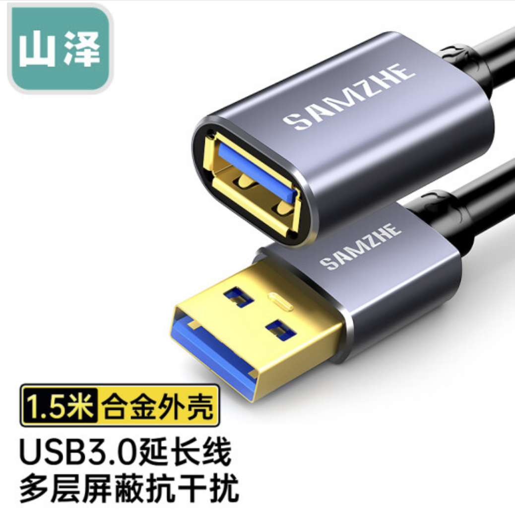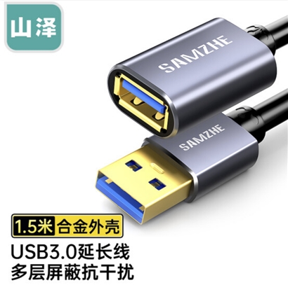 山泽(SAMZHE) USB延长线 usb3.0高速传输数据连接线 公对母 AM/AF U盘鼠标键盘加长线 铝合金黑色1.5米LK-15