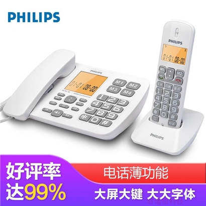 飞利浦(PHILIPS)无绳电话机 无线座机 子母机 办公家用 一键拨号 内部对讲DCTG152一拖一 (白色)
