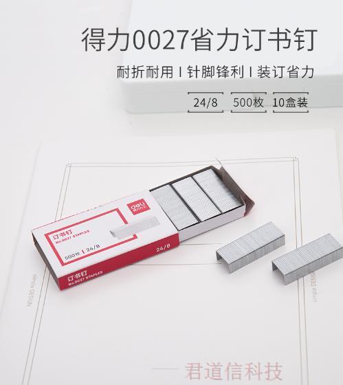 得力0027加厚订书钉 500枚一盒 10盒装 |