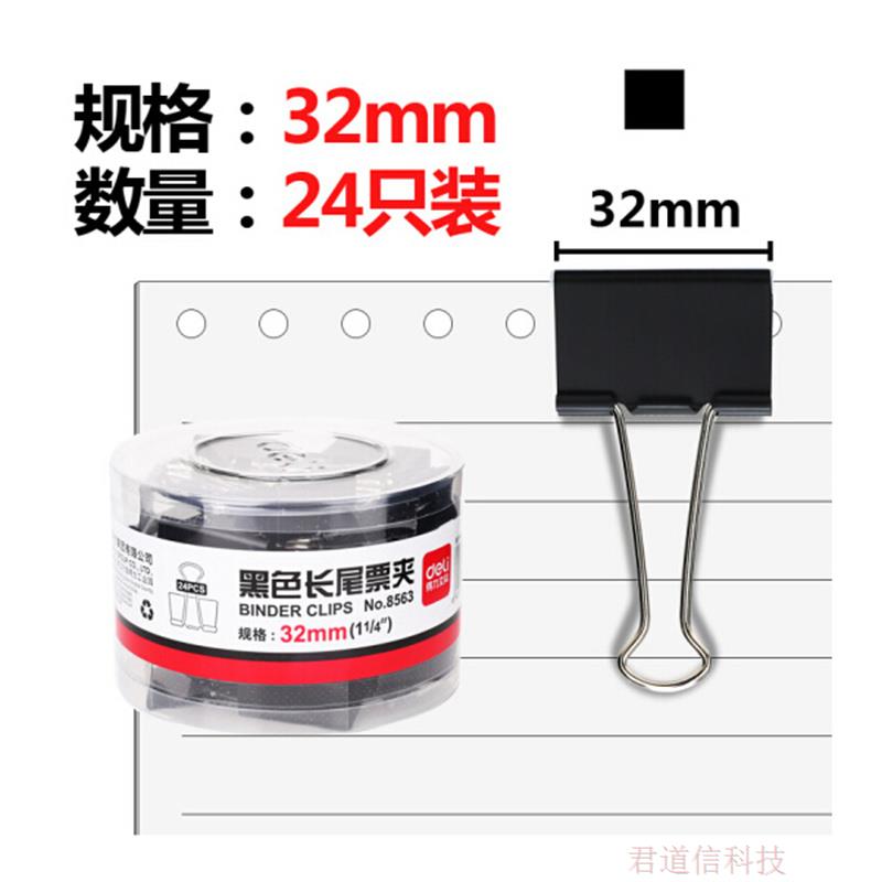 得力8563黑色长尾夹3# 32mm(24只/筒) |