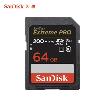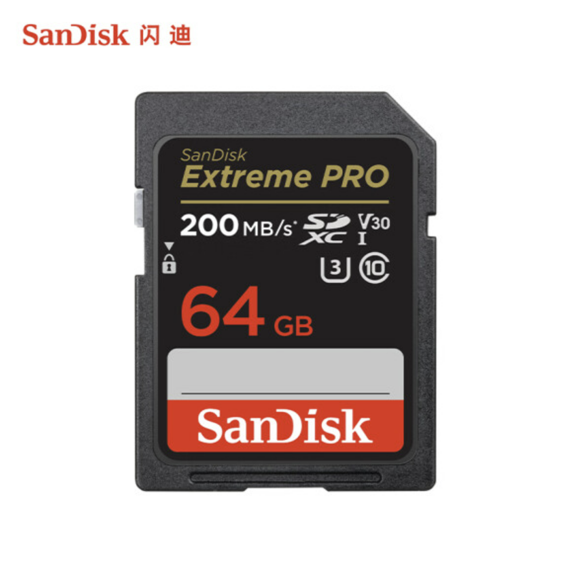 闪迪(SanDisk)64GB SD存储卡 U3 C10 V30 4K 至尊超极速版内存卡 读速200MB/s 写速90MB/s |