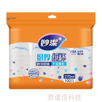妙洁 纸杯 一次性纸杯 270ml 100只装