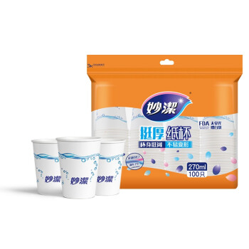 妙洁 纸杯 一次性纸杯 270ml 100只装