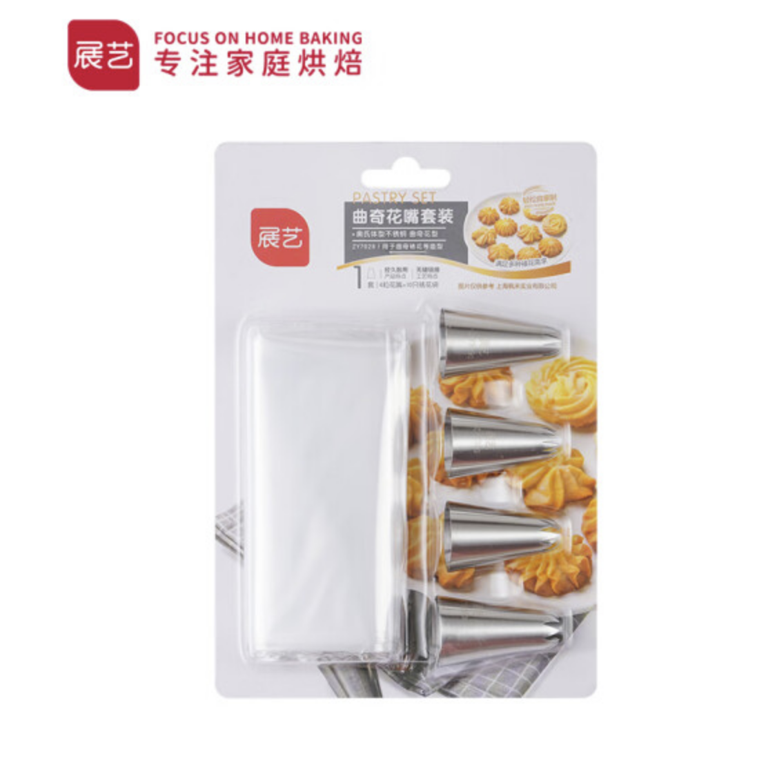 展艺 曲奇花嘴套装4粒 曲奇饼干裱花嘴裱花袋裱花头 烘焙工具套餐