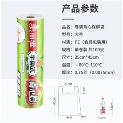 美丽雅 45CM 背心式透明保鲜袋 45*35cm/100只 |