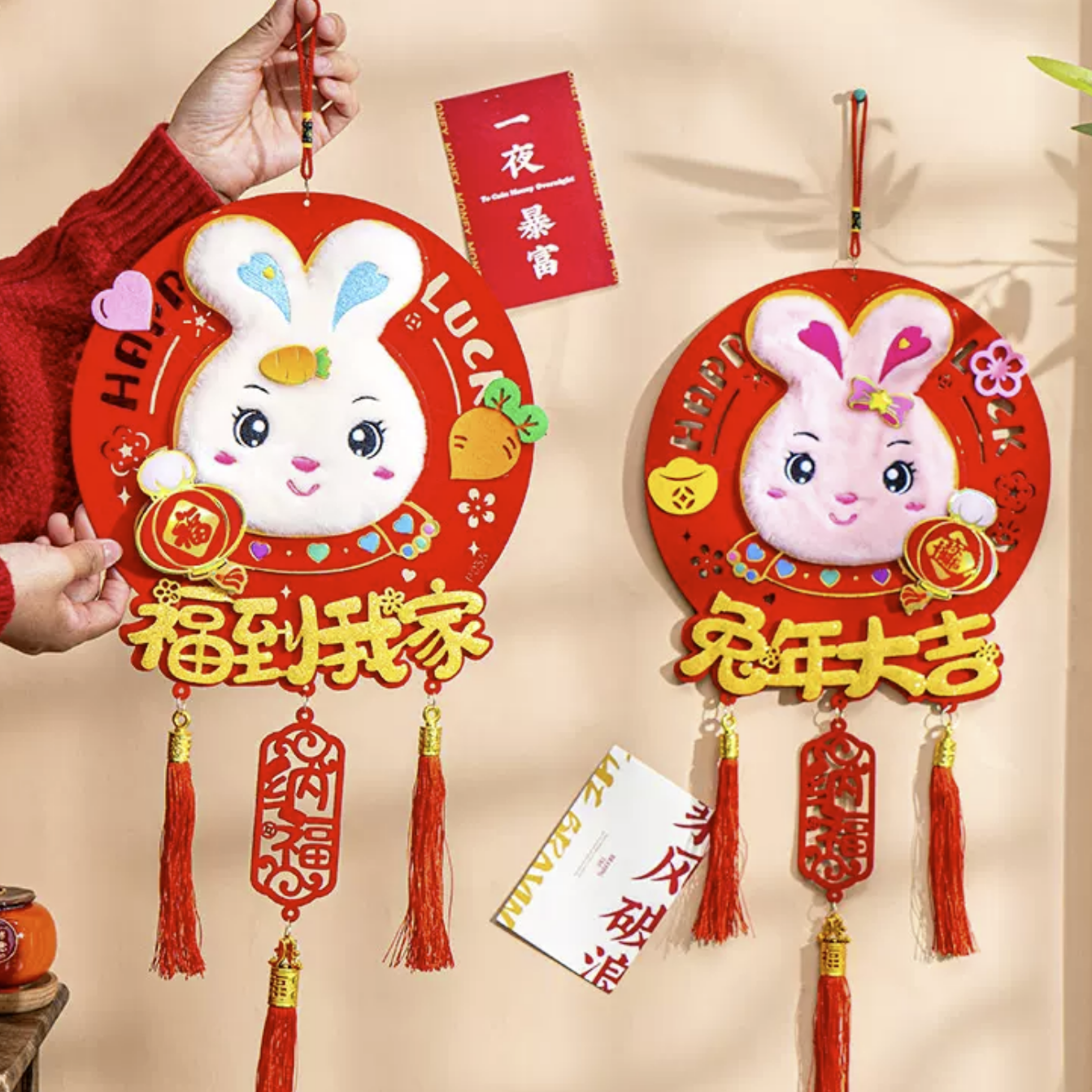 春节挂件福字毛绒兔