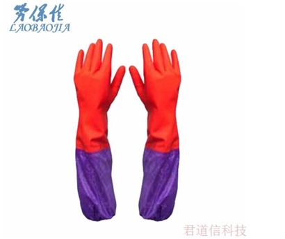 牛筋橡胶手套 加绒加厚防水保暖加棉橡胶手套 工业胶皮劳保手套 紫色 2双