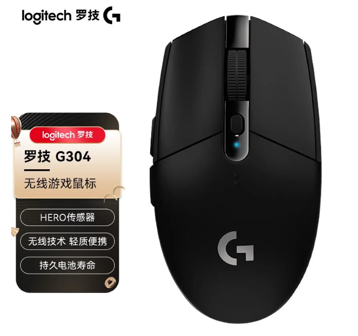 罗技(G) G304 LIGHTSPEED 无线游戏鼠标 电竞吃鸡鼠标 轻质便携 绝地求生鼠标宏编程 黑色