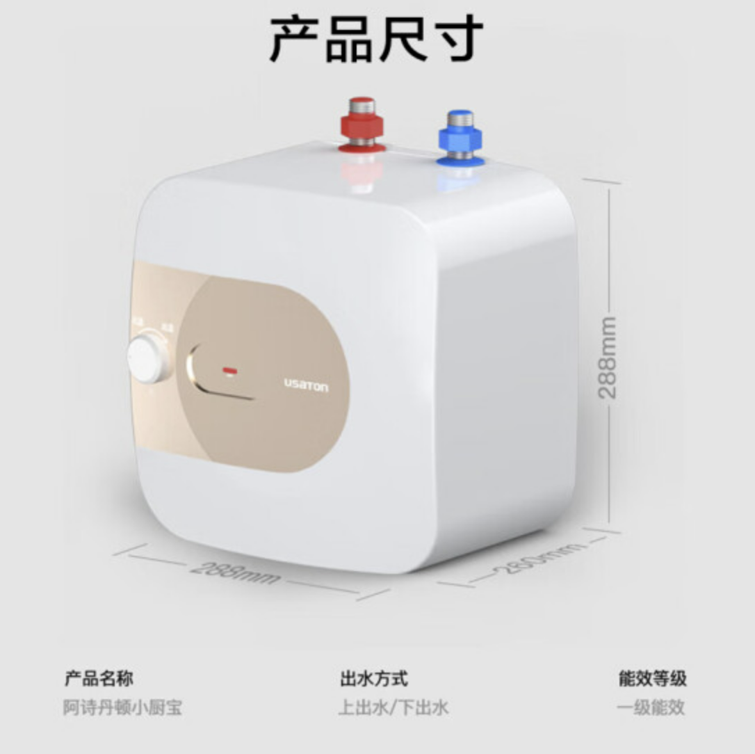 阿诗丹顿(USATON)6.6升小厨宝速热式厨房储水式电热水器迷你一级能效2000W下出水 |