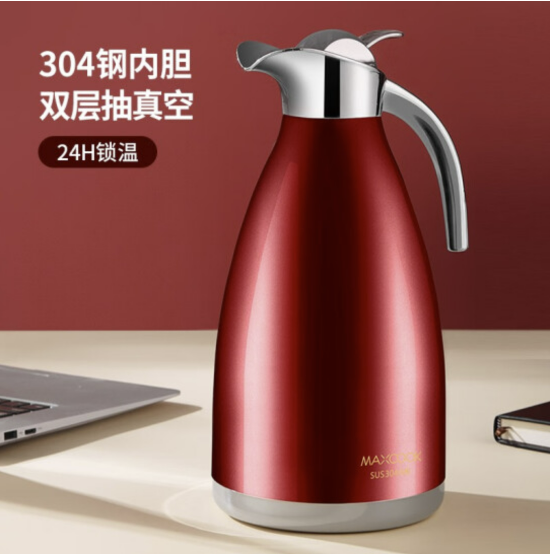 保温壶 不锈钢真空热水壶保温瓶杯大容量 2.0L 红色