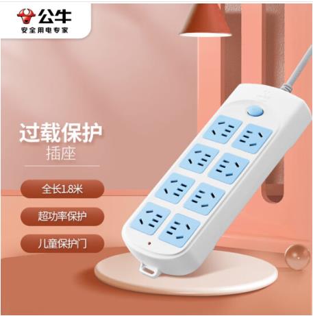 公牛(BULL)超功率保护新国标插座/插线板/插排/排插/接线板/拖线板 8位总控全长1.8米 GN-604 |