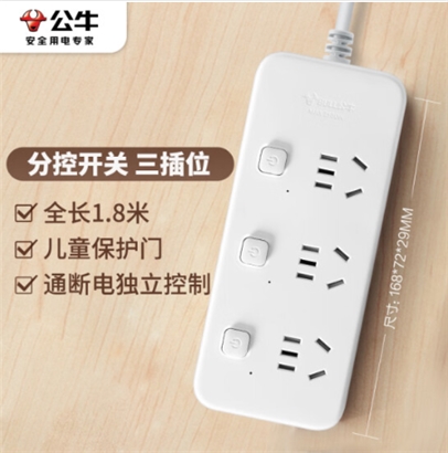 公牛(BULL)新国标分控插座/插线板/插排/排插/接线板/拖线板 GN-B2033 3位分控全长1.8米 独立开关