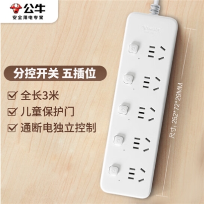 公牛(BULL)新国标插座/插线板/插排/排插/接线板/拖线板 5位分控全长3米 GN-B2053 |