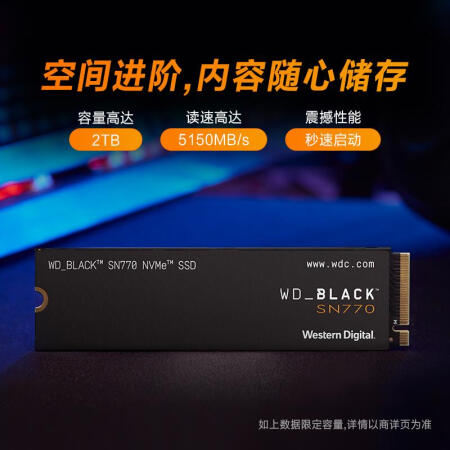 西部数据(Western Digital)1TB SSD固态硬盘 M.2接口(PCIe 4.0 x4)WD_BLACK SN770 NVMe SSD游戏高性能版