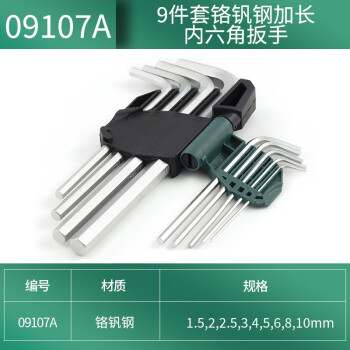 世达(SATA)09107A 9件套铬钒钢加长内六角扳手组套 六棱扳手 09107A 9件铬钒钢加长内六角扳手组套 |