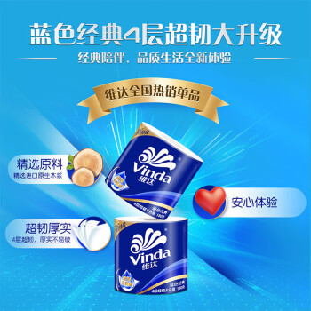 维达(Vinda)卷纸 蓝色经典180克30卷 4层加厚 卫生纸卷筒纸 纸巾卷纸 |