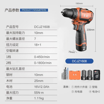 东成16V无刷锂电钻DCJZ1608(S型)手电钻充电式电动螺丝刀家用起子机