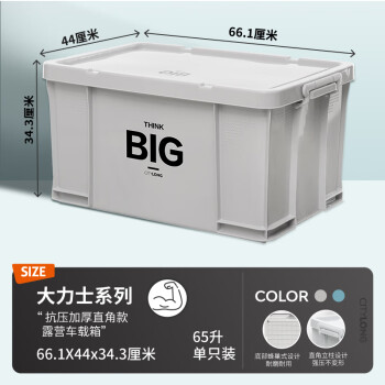 禧天龙ins工业风大力士加厚直角收纳箱户外野营车载储物箱 单只65升灰色