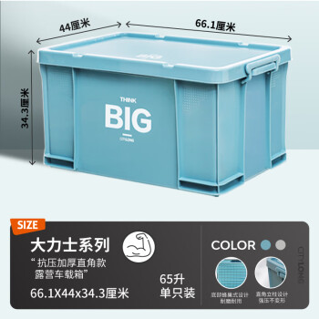 禧天龙ins工业风大力士加厚直角收纳箱户外野营车载储物箱 单只65升青色 |