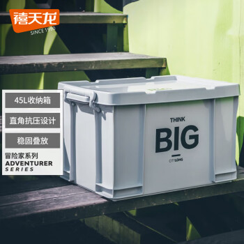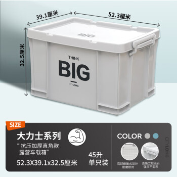 禧天龙ins工业风大力士加厚直角收纳箱户外野营车载储物箱 单只45升灰色