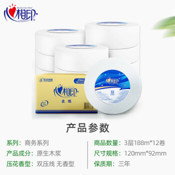 心相印卷纸商用大盘纸3层188米*12卷 卫生纸珍宝纸商场酒店(整箱销售)