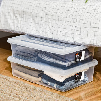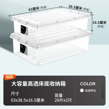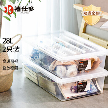 禧仕多床底收纳箱大号 28升2个装 玩具整理箱 衣服储物箱 透明搬家箱子