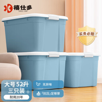 禧仕多塑料收纳箱大号 52升三个装 玩具整理箱 衣服储物箱 搬家打包箱子 |