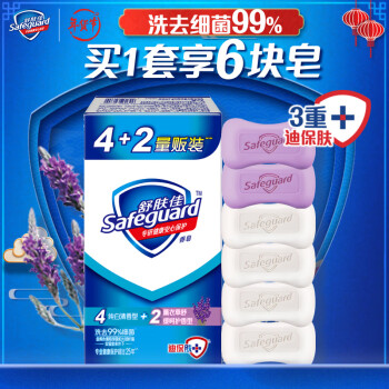 舒肤佳香皂 100g*6块(纯白*4+薰衣草*2)长效抑菌温和洁净洗去99.9%细菌