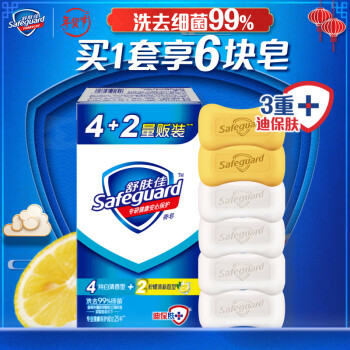 舒肤佳香皂 100g*6块(纯白*4+柠檬*2)长效抑菌温和洁净洗去99.9%细菌 |