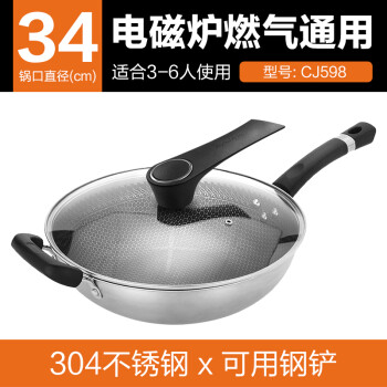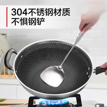 九阳(Joyoung)炒锅不粘锅34cm平底炒菜锅304不锈钢蜂窝炒菜锅电磁炉煤气灶通用 |