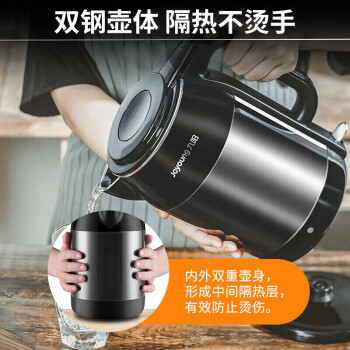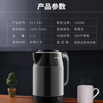 九阳(Joyoung)热水壶烧水壶电水壶1.7L 内外双钢无缝双层防烫304不锈钢家用开水壶K17-F67 |