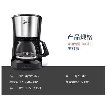 美的(Midea)咖啡机净甜家用办公小型迷你650ml大容量美式滴漏咖啡壶滴滤煮茶器泡茶壶KFD101