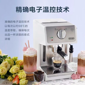 德龙(Delonghi) 咖啡机 意式半自动15Bar泵压 家用独立温控 打奶泡ECP35.31.W 可调式奶泡 电子控温 不锈钢锅炉进口水泵 全国联保