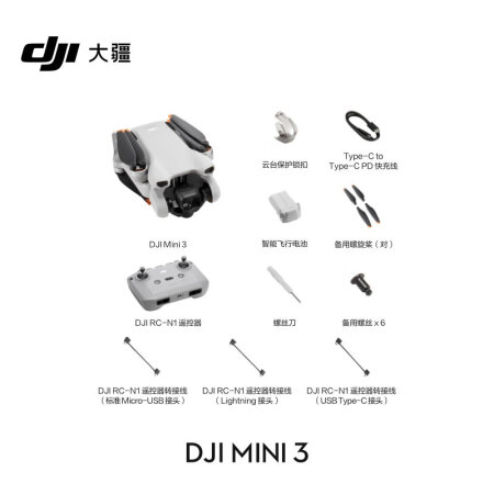 大疆 DJI Mini 3 带屏遥控器版 入门优选航拍机 高清专业小型长续航摄像飞机 大疆无人机(官方标配版) |