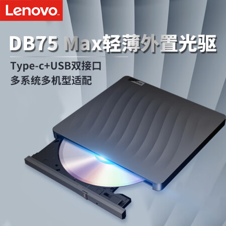 联想(Lenovo)8倍速 外置光驱 DVD刻录机 移动光驱 外接光驱 黑(Win7/8/10/XP/苹果MAC系统DB75-Max)
