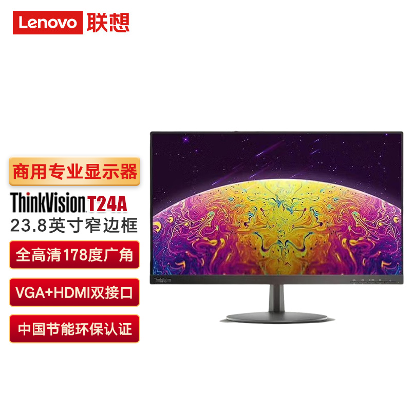 联想 ThinkVision T24A-10 23.8英寸液晶显示器(HDMI/VGA接口)