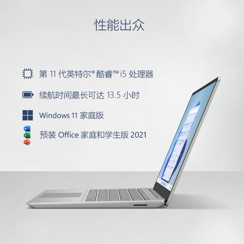 微软Surface Laptop Go 2 笔记本电脑 11代酷睿i5 8G+256G亮铂金 12.4英寸触屏 高性能轻薄本 笔记本 |