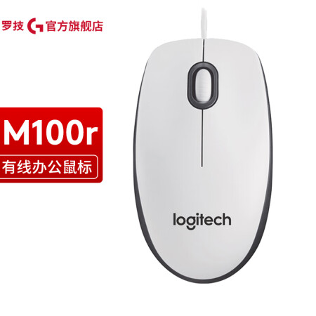 罗技(Logitech) M100r办公鼠标 电脑笔记本家用有线外设 左右手通用 黑白两色 白色