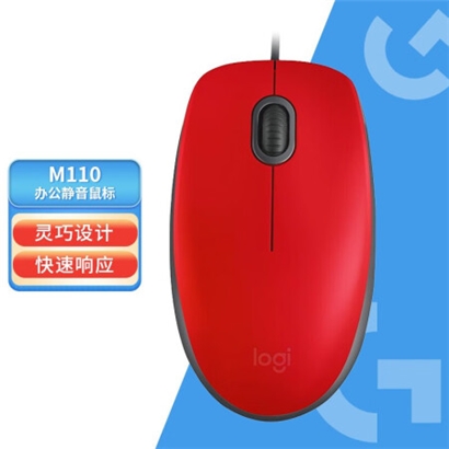 罗技(Logitech) M110 静音鼠标 有线鼠标 USB办公/家用对称光电鼠标 M110红色 |