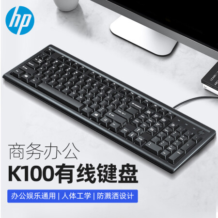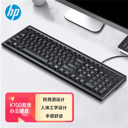 惠普(HP)K100办公键盘 有线USB键盘 104键全键盘笔记本台式电脑一体机通用办公键盘防泼溅水 |