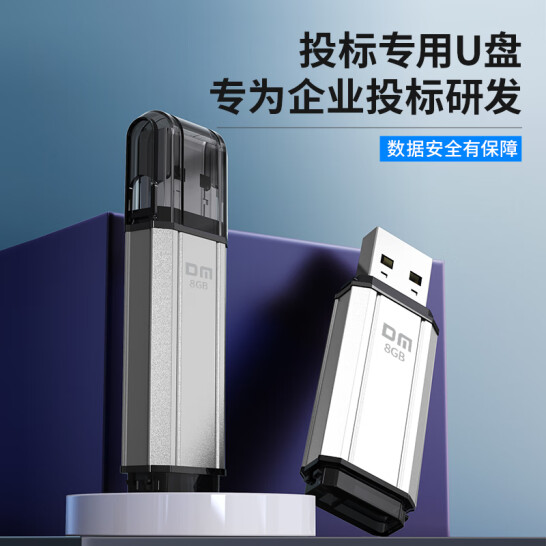 大迈(DM)8GB USB2.0 U盘 PD206 银色 招标投标小u盘 防水防震电脑车载优盘