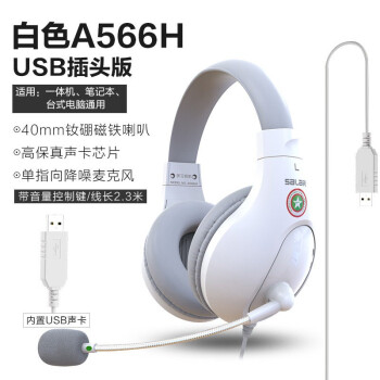 声籁A566 升级版H 头戴式学英语带麦耳机有线 电脑降噪联想电脑笔记本听力考试 网课培训耳麦带话筒 白色A566H 【带麦-内置声卡】USB接口 降噪 |