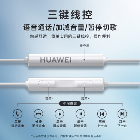 华为(HUAWEI)原装耳机/半入耳式耳机/三键线控/带麦克风/原装手机耳机 白色 标准版 AM115 |