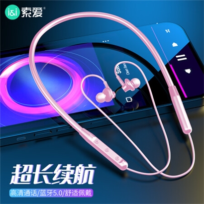 索爱 soaiy E13蓝牙耳机挂脖式无线运动颈挂式入耳跑步耳机超长续航苹果vivo华为oppo小米手机通用无线耳麦粉