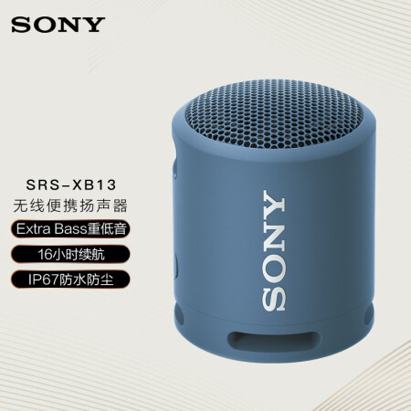 索尼(SONY)SRS-XB13 蓝牙音箱 迷你便携 重低音16小时续航 户外音箱 IP67防水防尘 浅蓝色