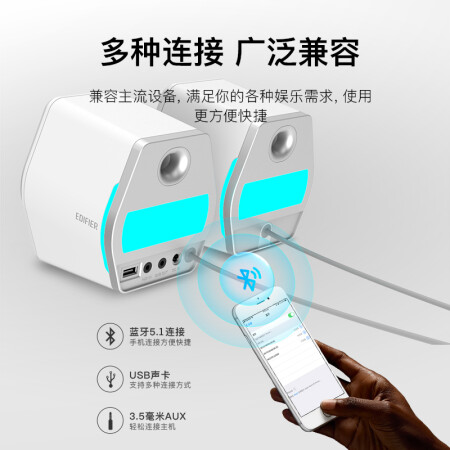 漫步者(EDIFIER)HECATE G2000蓝牙游戏音箱 无线2.0专业电竞桌面音响 电脑多媒体家用台式机手机低音炮 黑色